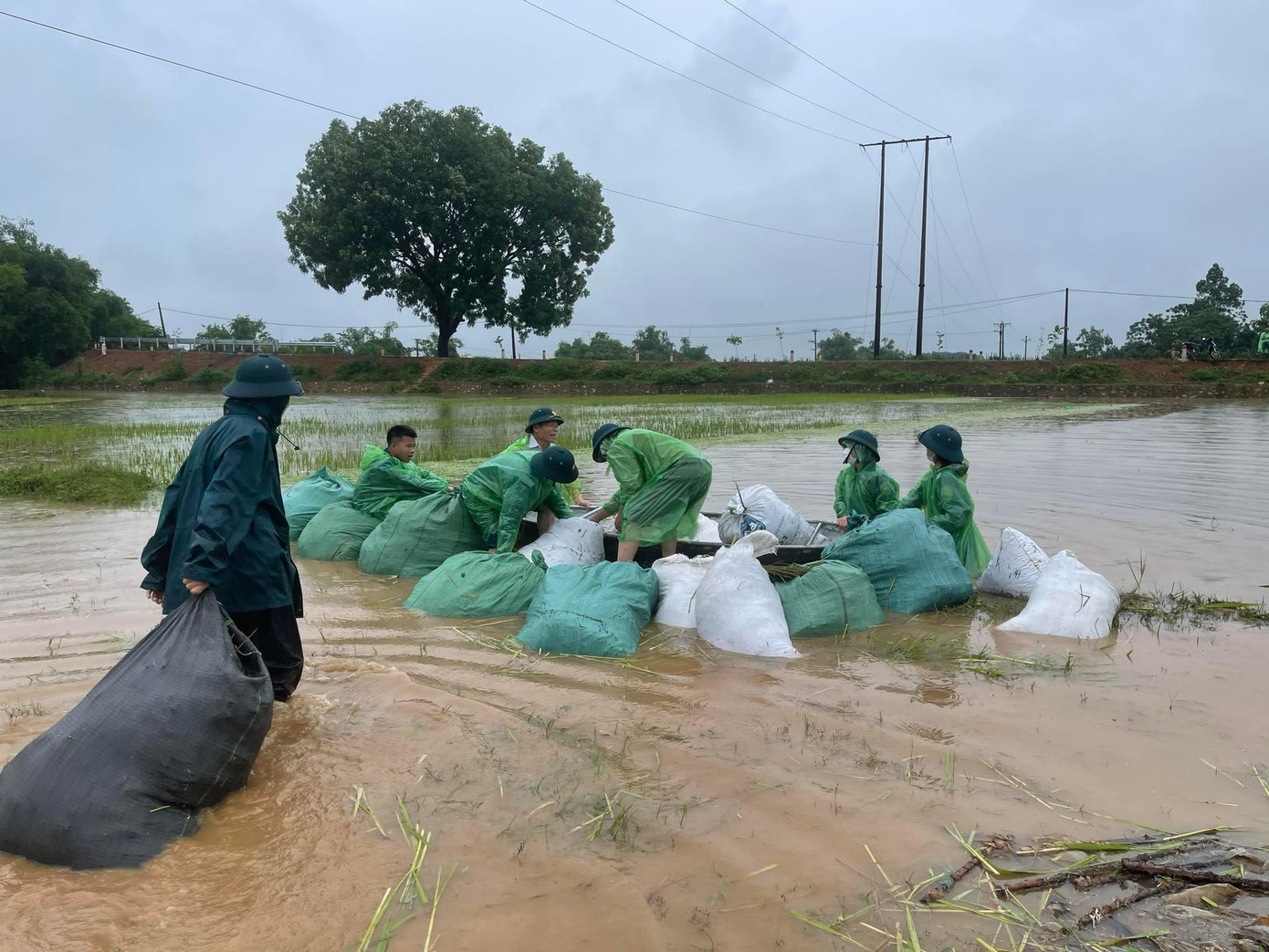 Nhiều diện tích lúa bị ngập đến ngang lưng cán bộ chiến sỹ