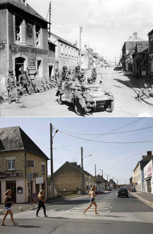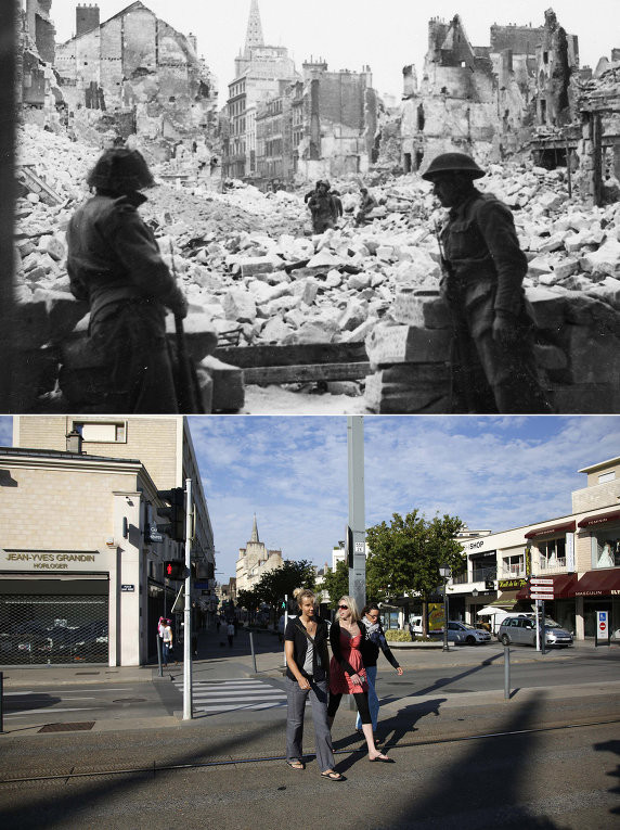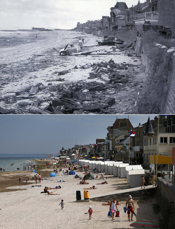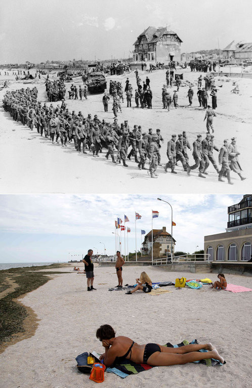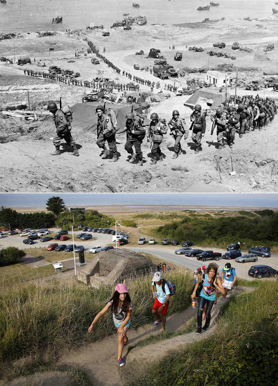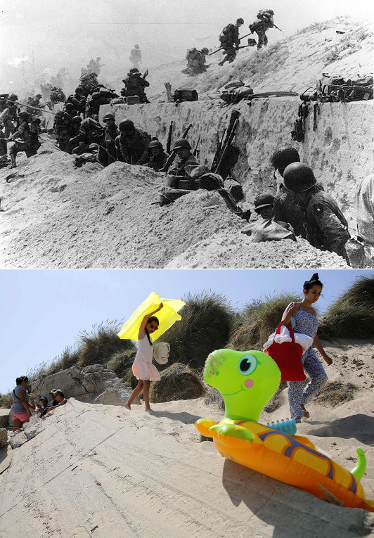 Nhiếp ảnh gia Reuters đã thực hiện cuộc khảo sát bãi biển Normandy hôm nay dựa trên khung cảnh về cuộc đổ bộ Normandy 70 năm về trước.