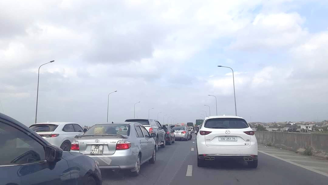 | Từng hàng xe nối dài trên cao tốc Pháp Vân - Cầu Giẽ. |