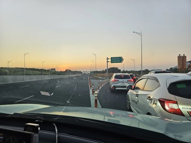 "Chỉ riêng đường dẫn lên cao tốc này đoạn đường từ Quốc lộ 1 (đoạn Vĩnh Hảo, Bình Thuận), xe tôi nhích hơn 30 phút vì ùn ứ. Hy vọng trên cao tốc về tới TP HCM không bị kẹt xe" - anh Ngọc Hạnh (ngụ TP Thủ Đức) than với phóng viên Báo Người Lao Động.