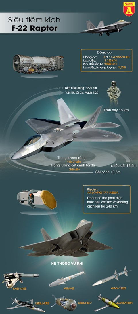 Hiện tại Mỹ đang có 187 chiếc F-22 Raptor, và chúng được coi là đỉnh cao công nghệ của khoa học kỹ thuật Mỹ. Cùng xem thông số chi tiết của loại siêu tăng này qua infographic.