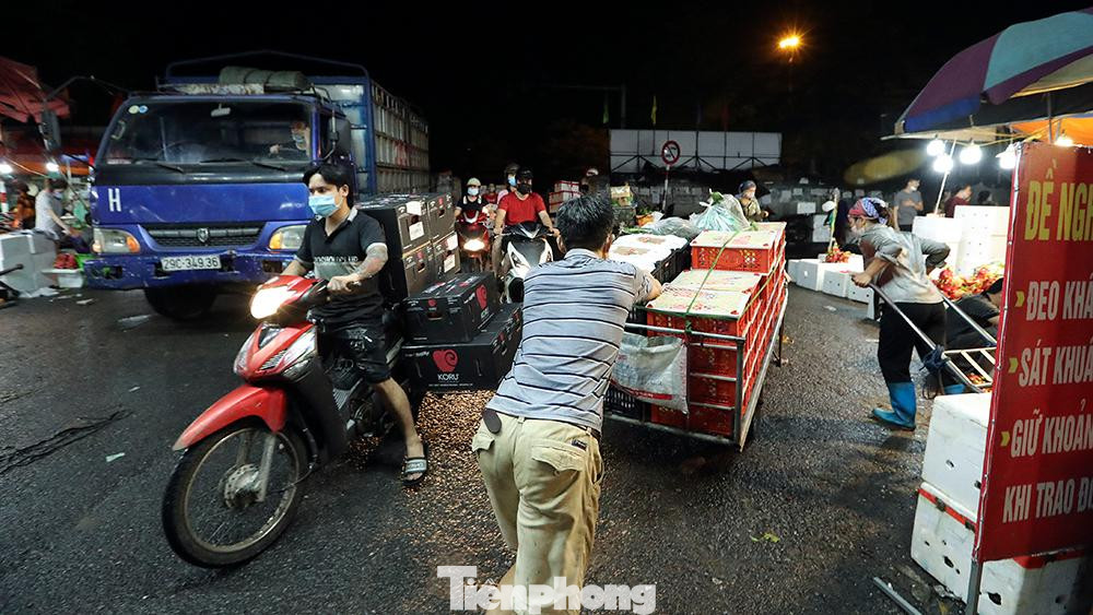 TPO - Từ 6h sáng nay, ngày (24/7). Hà Nội chính thức cách ly toàn xã hội theo chỉ thị 16 để phòng chống dịch. Tuy nhiên, hôm nay cũng là ngày Rằm tháng 6 theo Âm lịch, vì vậy đêm trước ngày giãn cách, khu chợ đầu mối này vẫn tấp nập người mua, kẻ bán.