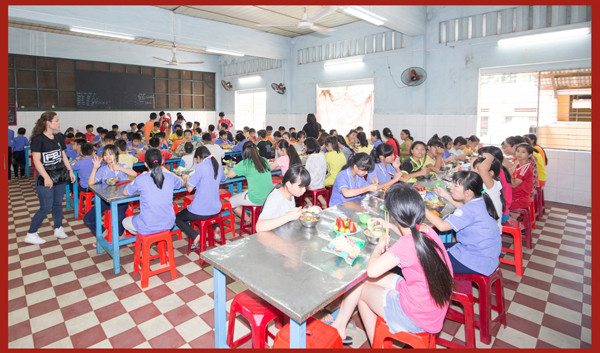 Chương trình kết thúc trong hình ảnh quây quần của hàng trăm em nhỏ và các anh chị tình nguyện viên cùng thưởng thức bữa ăn trưa đặc biệt được chính những “đầu bếp không chuyên” chế biến bằng trọn vẹn yêu thương