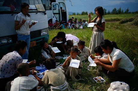 Suốt cả ngày, gần trăm con người đứng ngồi vạ vật, ăn uống qua loa, có những người quen nhau, tụ họp lại ngồi thành một nhóm, có những người mới đến nhìn quanh ngơ ngác.