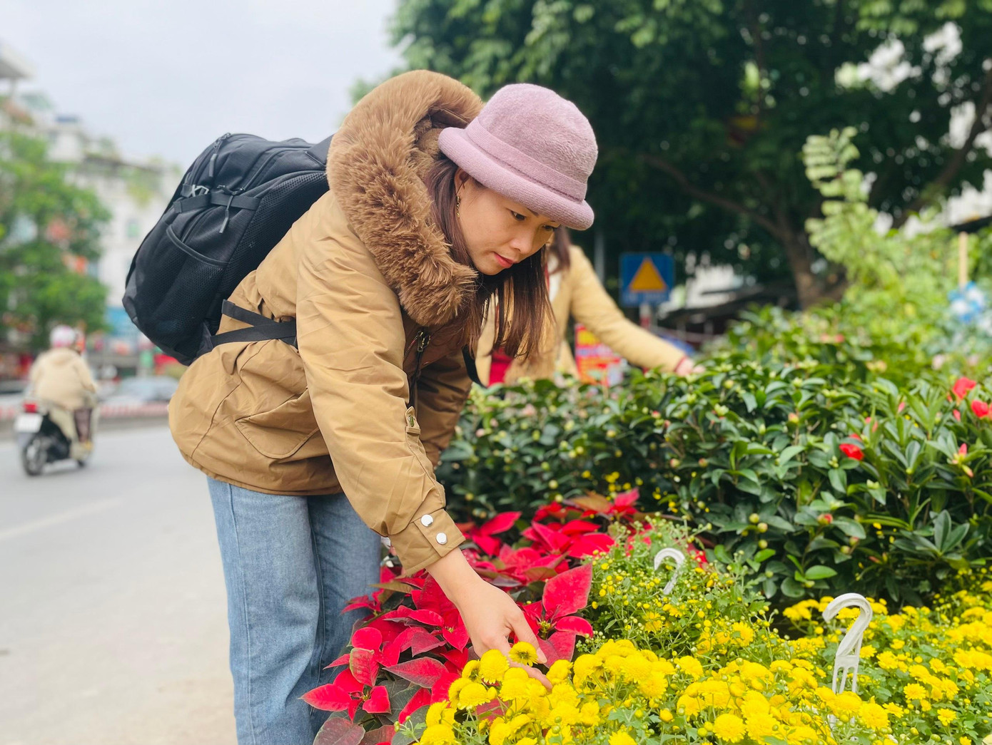 | Chỉ cần tới phố Hoàng Hoa Thám đã cảm nhận được "hơi thở" của Tết bởi rực rỡ hoa màu và nhộn nhịp "người mua kẻ bán". |