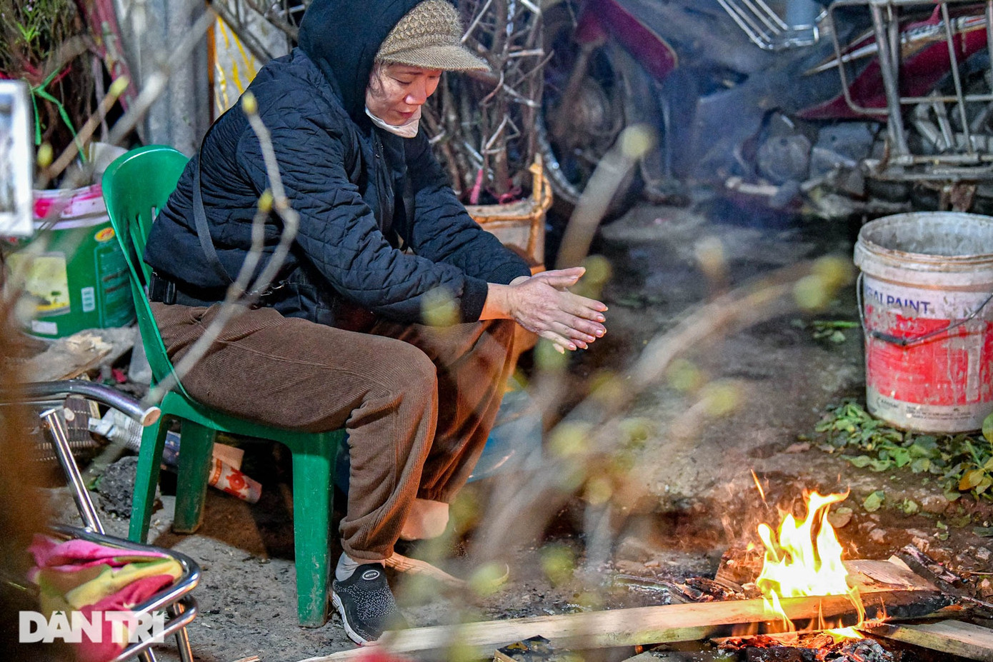 Thời tiết Hà Nội về đêm có lúc xuống dưới 10 độ C, các tiểu thương bán hoa phải đốt củi sưởi ấm.