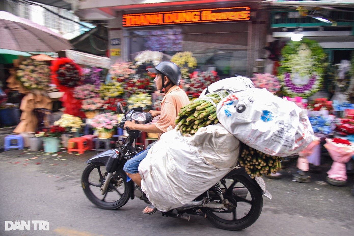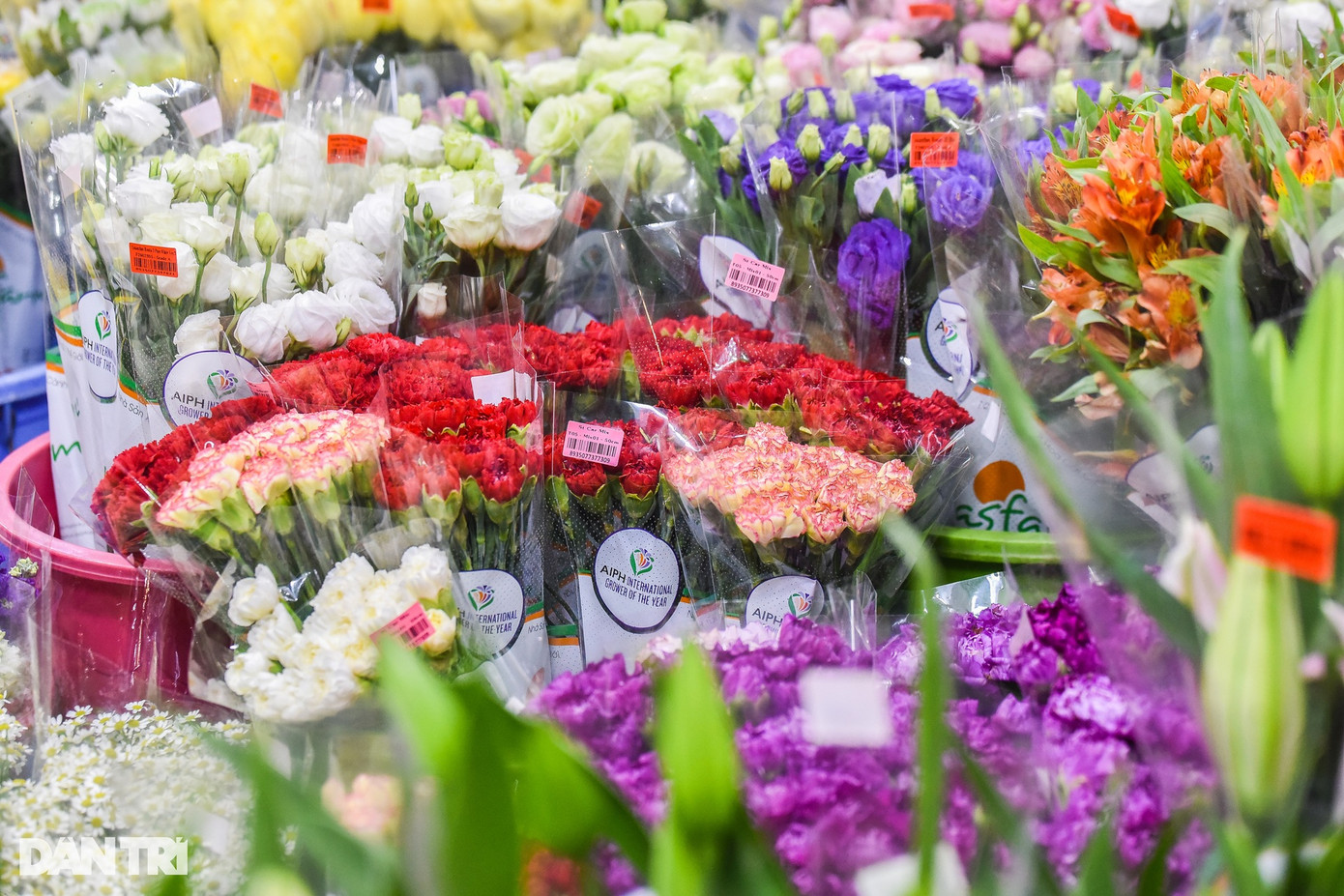 Khoảng 0h, các xe chở hoa từ các tỉnh về chợ đầu mối để bán cho các tiểu thương. Để phục vụ trong dịp lễ này, nhiều tiểu thương nhập từ vài chục đến cả trăm triệu đồng tiền hoa.