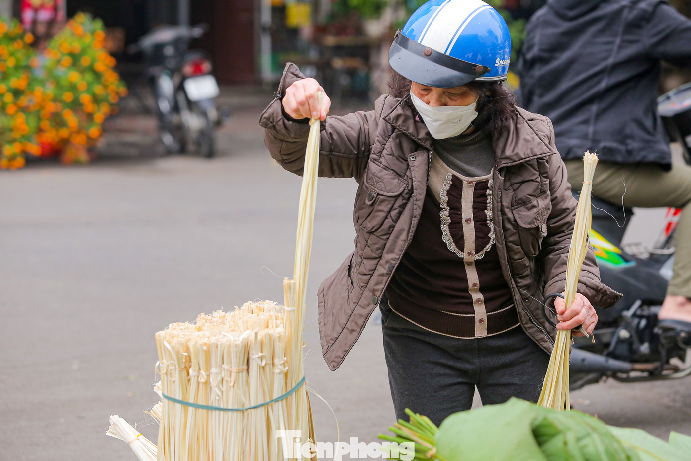 | Mỗi bó lá dong (khoảng 26 lá) được bán với giá 50.000 đồng, mỗi bó dây lạt được bán với giá 25.000 đồng. |