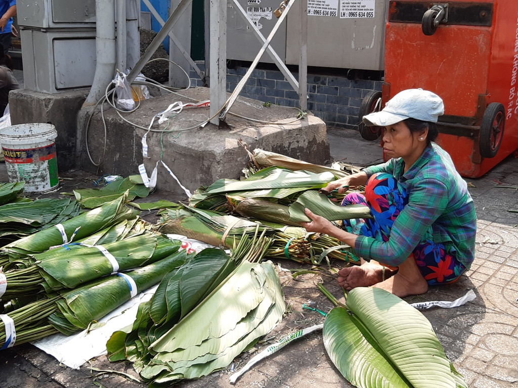 Chị Tâm (55 tuổi), bán lá dong trên đường Phạm Văn Hai (Q.Tân Bình) cho biết: "Trước tết chúng tôi đã nghe tin heo tăng giá nên cũng đoán định được sẽ có ít người gói bánh chưng, bánh tét hơn. Vì vậy đã giảm hơn 30% sản lượng lá bán so với năm ngoái. Tuy nhiên không ngờ lại ế ẩm đến vậy".