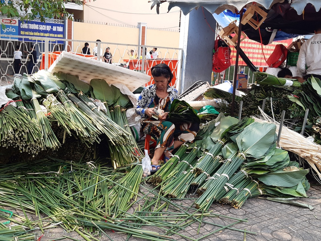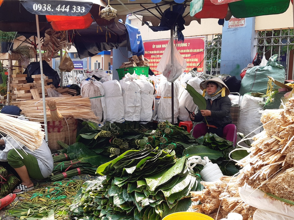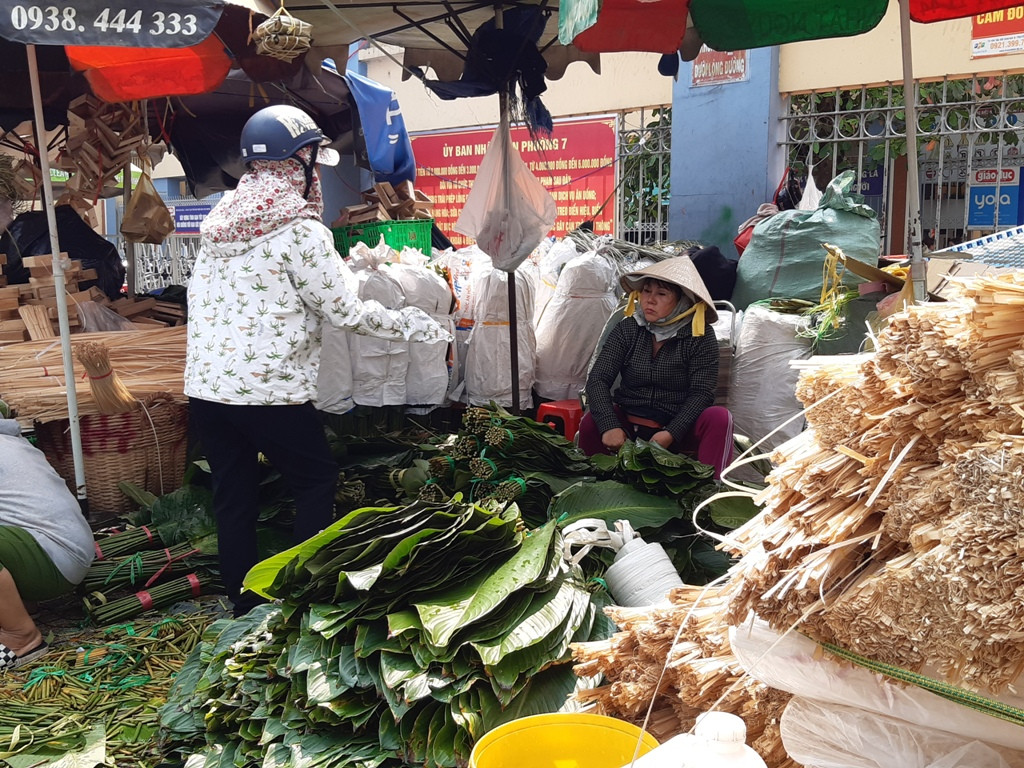 Tại chợ, còn có khuôn làm bánh chưng có đường kính từ 10-18 cm có giá từ 15.000-30.000 đồng/cái; dây buộc bánh 100.000 đồng/bó lớn, bó nhỏ 10.000 đồng.