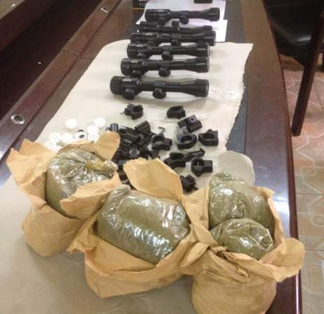 Tổ tuần tra đã phối hợp với Lực lượng quản lý thị trường tiến hành kiểm tra hành chính đối với chiếc xe trên. Qua kiểm tra, lực lượng chức năng đã phát hiện và thu giữ 3kg thuốc súng, 156 máy xông tinh dầu không rõ nguồn gốc và một số phụ kiện của súng.