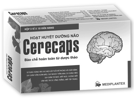 | CERECAPS - Điều trị Thiểu năng tuần hoàn não Thành phần: Cao khô Hồng hoa: 45 mg, cao khô Xích thược: 60 mg, cao khô Đương quy: 110 mg, cao khô Xuyên khung: 110 mg, cao khô Sinh địa: 60 mg, cao khô Chỉ xác: 45 mg, cao khô Sài hồ: 45 mg, cao khô Ngưu tất: 60 mg, cao khô Cam thảo: 60 mg, cao khô Bạch quả: 15 mg.