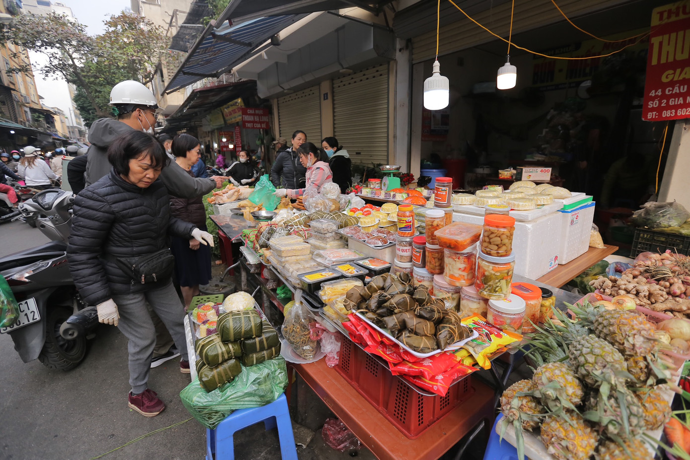 | Khu chợ cũng là "thiên đường" của các món ăn ngày Tết như giò bò, giò lợn, chả bì, bánh chưng, thịt bò khô, chân gà ủ muối, bắp bò ngâm nước mắm... |