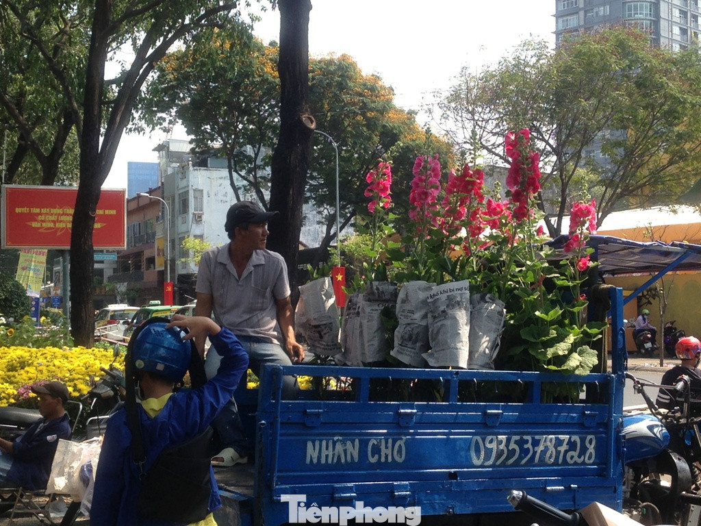 Cứ đến tết, cánh xe ôm lại bắt thêm cái baga khá rộng để chở hoa được nhiều. Thời điểm đắt khách nhất thường là tối 29-30 tết. Lúc đó hoa đại hạ giá, khách đều mua hoa số lượng nhiều và thuê xe chở về.