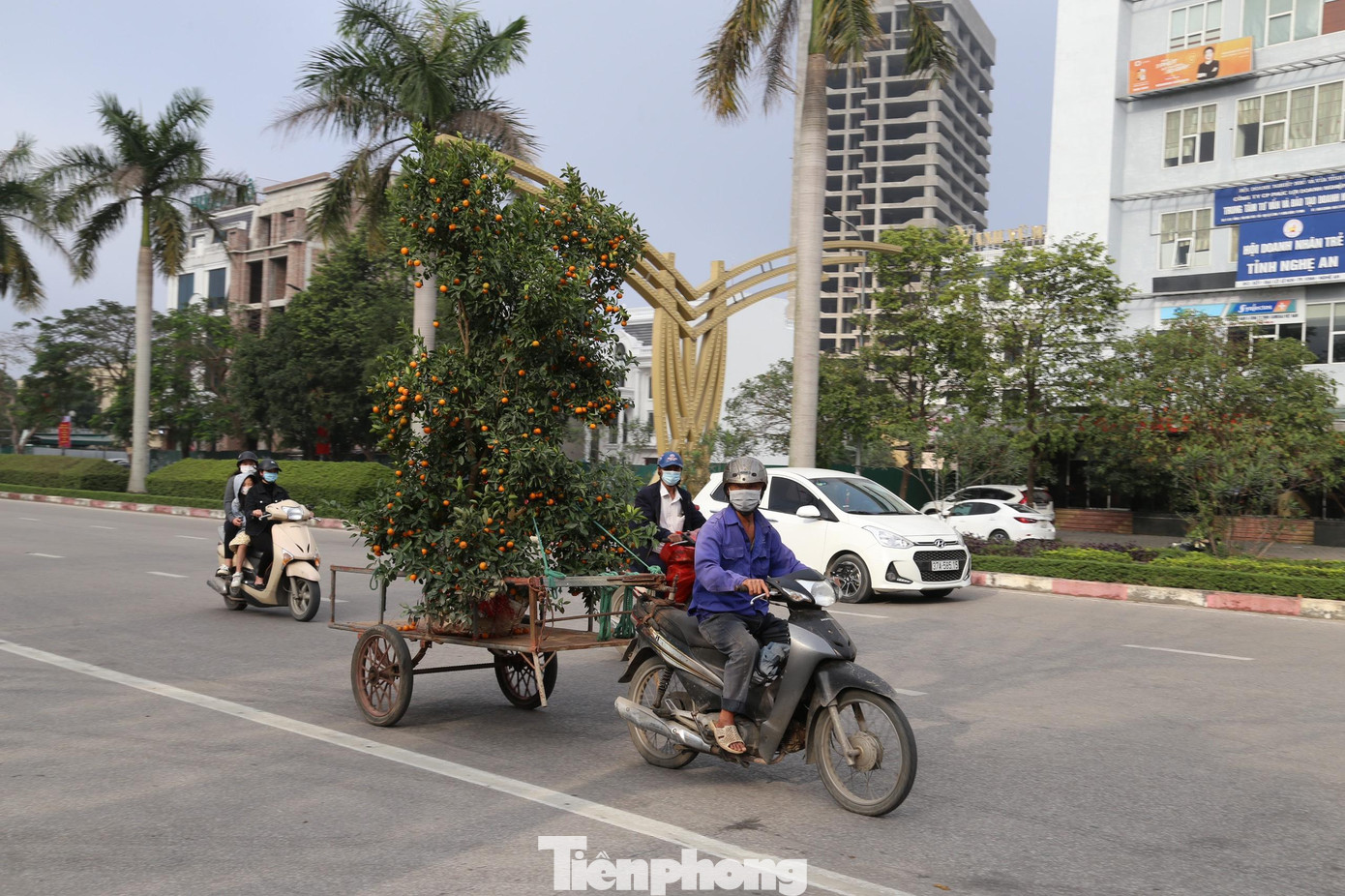 | Tại TP Vinh hiện có 2 loại hình vận chuyển cây cảnh. Đối với những gốc đào, mai, quất... khủng, có giá hàng chục đến hàng trăm triệu, khách sẽ chọn đơn vị vận chuyển là xe cẩu, xe chở hàng có kích thước lớn. Đối với những cây nhỏ, giá trị thấp hơn thì thường thuê những người làm nghề xe ôm, cửu vạn, xích lô... |