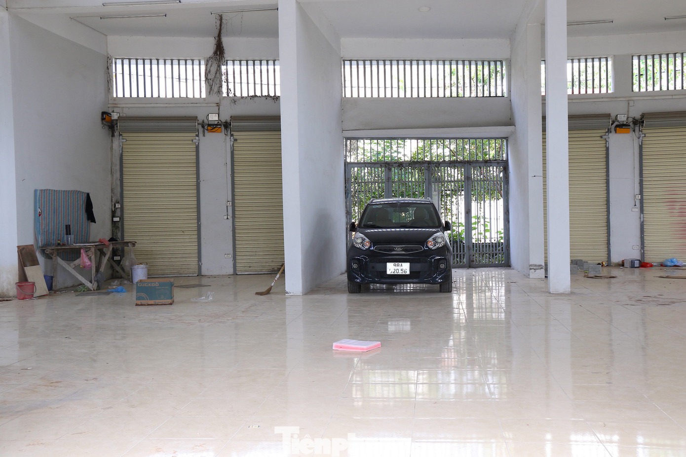 | Bên trong chợ được tận dụng thành chỗ để xe và chỗ sinh hoạt, ăn, ở trong thời gian dài. |
