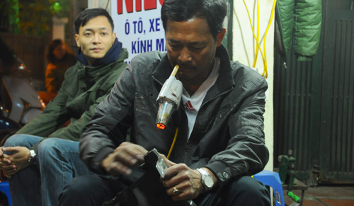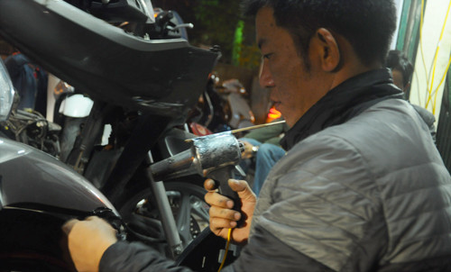 Đèn khò làm nóng là vật dụng không thể thiếu của các thợ làm nghề "trang điểm" cho xe máy