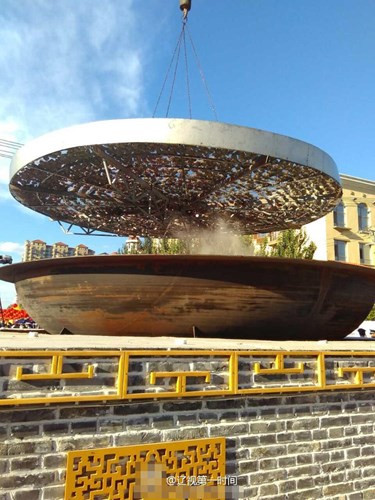 Theo đó, gia đình này sử dụng một chiếc nồi cỡ lớn rộng 6,6m với chiều cao 2,3m và lòng nồi sâu 1,5m có trọng lượng 7 tấn và phải nhờ đến một chiếc xe cần cẩu nhấc trên không.