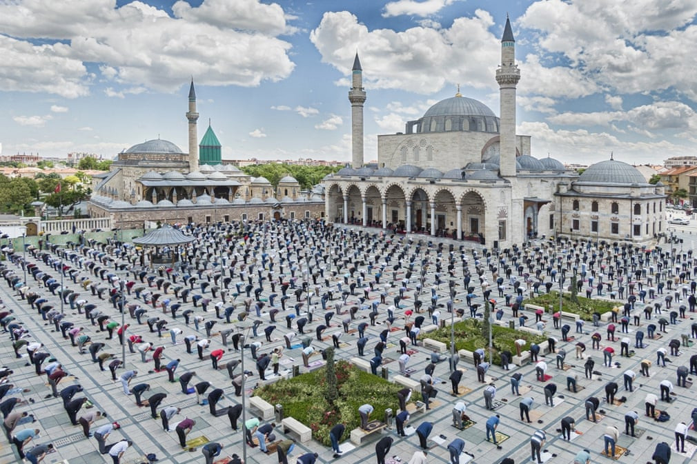 Người Hồi giáo đi cầu nguyện và duy trì khoảng cách xã hội để tránh việc lây, nhiễm virus corona ở Konya, Thổ Nhĩ Kỳ được Levent Ates chụp lại.