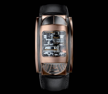 Chi tiết hơn, đồng hồ Parmigiani Bugatti Mythe gồm 314 bộ phận; trong đó, có 37 chi tiết là đá quý và khả năng hoạt động trong 10 ngày. Mặt đồng hồ hình tròn và được cắt mép thủ công. Dây bằng da bê Hermes màu đen với khóa gập bằng vàng đỏ - màu thời trang của năm nay.