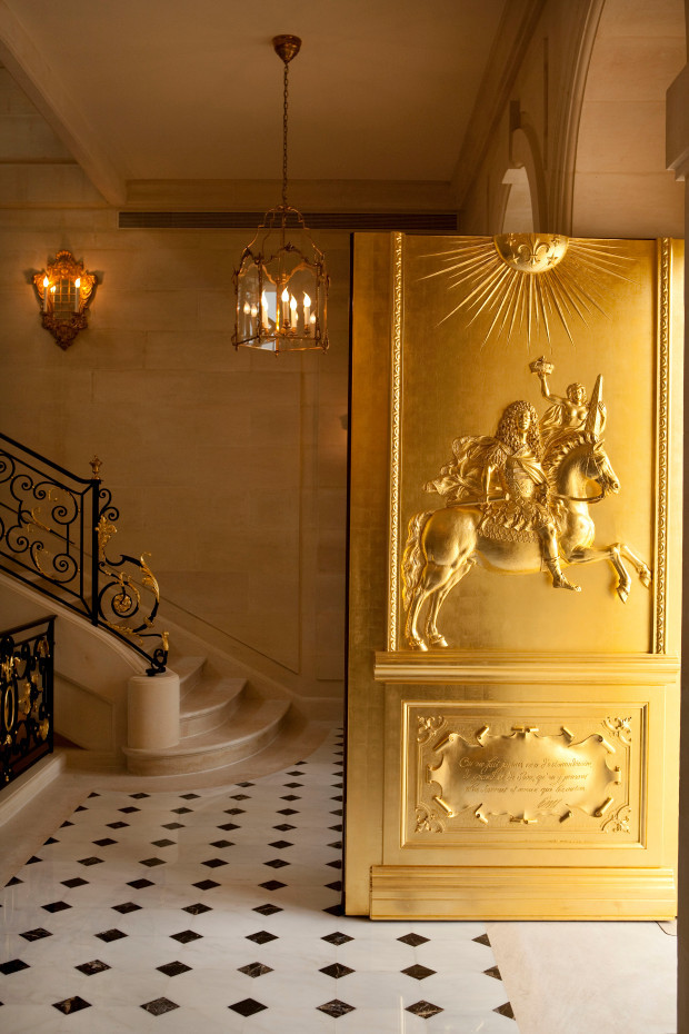 Hầu hết các cánh cửa trong biệt thự đều được mạ vàng, trong khi lan can cầu thang cũng có rất nhiều họa tiết làm bằng vàng. Biệt thự có rất nhiều khu vực tối tân, đắt đỏ. Đặc biệt, nó có cả phòng thiền định, phòng lạnh trong lòng hào nước xung quanh lâu đài.