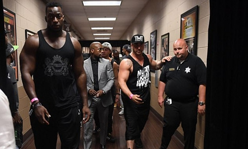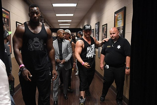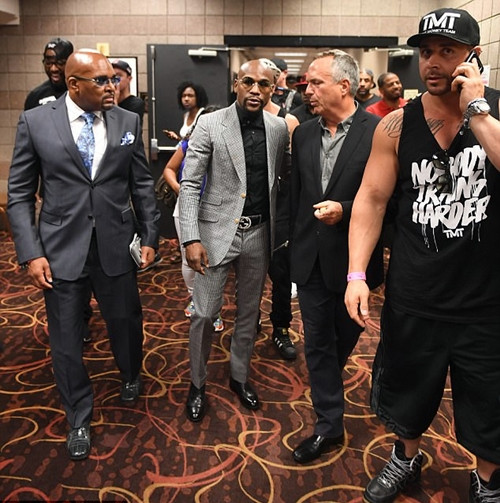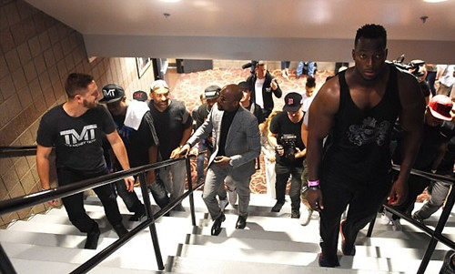 Dàn vệ sĩ của Mayweather đủ khả năng che chắn cho võ sĩ người Mỹ, cao khoảng 1m73, và cố vấn truyền thông Leonard Ellerbe trước mọi soi mói từ báo chí và sự quá khích của người hâm mộ.