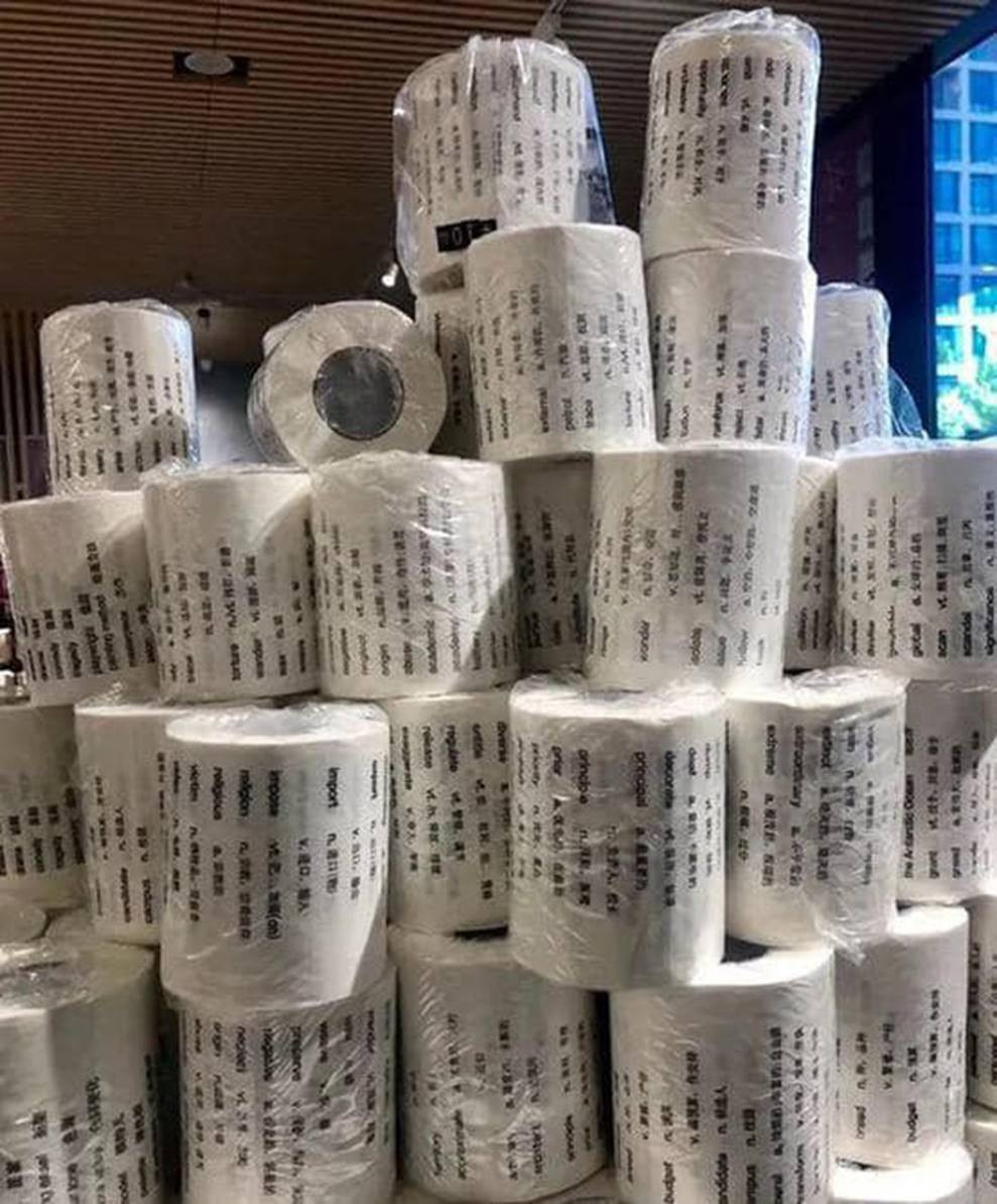 Cụ thể, những cuộn giấy vệ sinh in từ vựng tiếng Anh kèm theo giải nghĩa tiếng Trung được bán ở bảo tàng nghệ thuật của Đại học Thanh Hoa - một trong những trường đại học hàng đầu ở Trung Quốc. Mỗi cuộn có giá 10 NDT (hơn 30.000 đồng). Thậm chí vì được in bằng mực, một số người lo ngại liệu có bị dính mực vào... mông hay không.