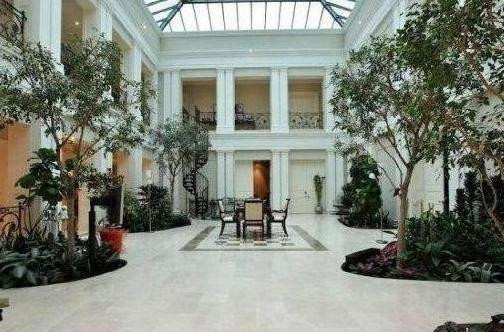 Toàn bộ phần sân trong nhà lát gỗ tạo cảm giác ấm áp và gần gũi thiên nhiên. Không gian to rộng như mê cung, xung quanh trồng rất nhiều hoa và cây xanh. Đây cũng là nơi người đẹp thường giành thời gian để thưởng thức trà chiều.