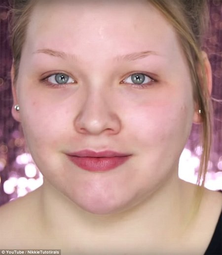 Trong đoạn video nãy, Nikkie trang điểm nửa gương mặt bên phải và nửa gương mặt bên trái để "mộc". Gương mặt bên trái của Nikkie không có các đường nét sắc sảo, làn da mịn nhưng mẩn đỏ, không đều màu.