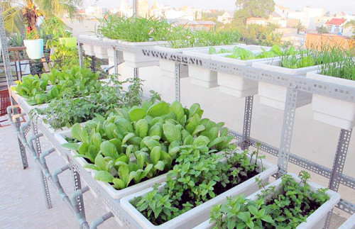 Hơn 3 tháng nay, chị Vũ Thị Thủy ở Trương Định (Hoàng Mai, Hà Nội) không còn phải ra chợ mua bất cứ loại rau nào từ cọng hành cho tới củ tỏi... Gia đình chị đã chi hơn 1,5 triệu đồng mỗi tháng để thuê người chuyên chăm sóc vườn rau sạch - vốn được cải tạo từ cái sân thượng rộng chưa đầy 10m2.