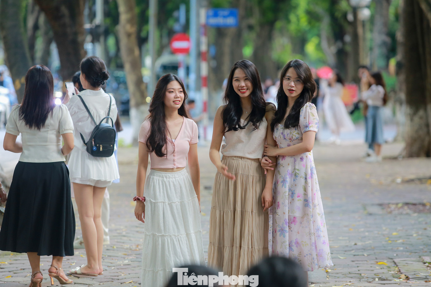 | Vừa bước vào những ngày đầu tháng 8, khi thời tiết còn chưa kịp "chuyển mình", vẫn còn nắng nóng, hàng trăm "nàng thơ" đổ về các con phố Phan Đình Phùng, Hoàng Diệu.. những con phố lãng mạn nhất Thủ đô trong tiết trời thu khiến nơi đây trở nên đông nghẹt. |