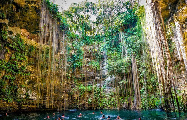 Ánh sáng chiếu xiên xuống lòng hố, xuyên qua những tán cây dây leo tạo nên khung cảnh kỳ ảo, nên thơ khiến nơi đây trở thành một trong những điểm đến nổi tiếng nhất ở Mexico.
