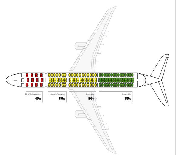 Hành khách ngồi tận cùng đuôi máy bay sẽ có tỷ lệ thoát chết cao ngang với người ngồi khoang VIP là 65%, thậm chí ngồi ở đuôi còn may mắn hơn rất nhiều.