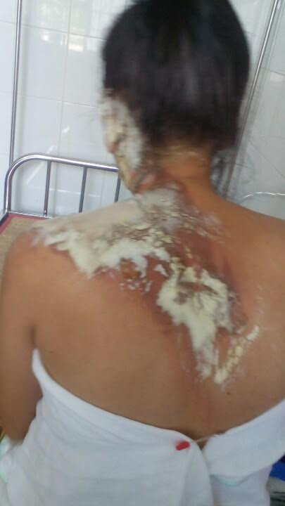 Theo thông tin từ Bệnh viện Cái Bè, nạn nhân Nguyễn Thị Hồng Lệ nhập viện vào sáng 21/8 trong tình trạng bị bỏng nước sôi từ đầu, cổ và lưng. Nặng nhất là vết thương ở tai bên trái, nạn nhân không nghe được vì bị chế nước sôi trực tiếp vào tai rồi nước sôi chảy tràn ra ngoài.