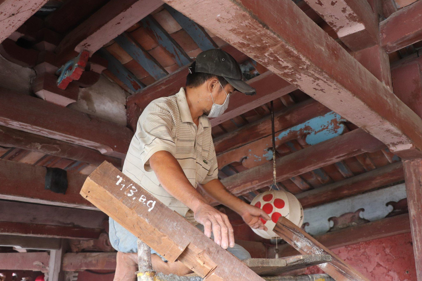 Việc chống đỡ di tích chùa Cầu được thực hiện cẩn thận, công nhân sử dụng cao su kê vào các điểm nối để không tạo dấu tích. Ngoài ra, việc đóng đinh cũng không được mà phải sử dụng dây cao su để đảm bảo nguyên vẹn gỗ.