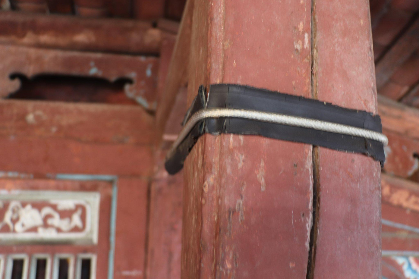 | Việc triển khai chống đỡ tại di tích phải hết sức cẩn thận. |