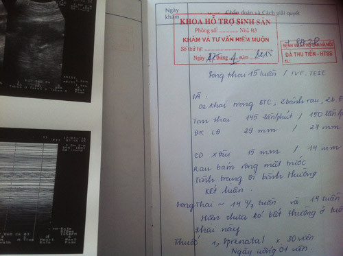 4 tháng nay kể từ ngày chị mang bầu, hàng tuần đều đặn anh chị bắt xe khách từ Hải Dương lên Bệnh viện phụ sản Hà Nội thăm khám. Tờ kết quả siêu âm thông báo, chị đang mang thai đôi, cả mẹ và các con đều khỏe mạnh. Hạnh phúc với anh Dũng và chị Thắm bao năm nay giờ nghẹn ngào khôn tả.