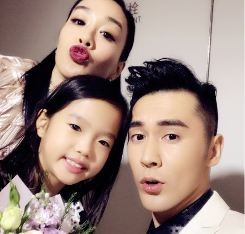 Chung Lệ Đề và Luân Thạc chụp ảnh cùng cô con gái út trong một sự kiện vào năm 2017.
