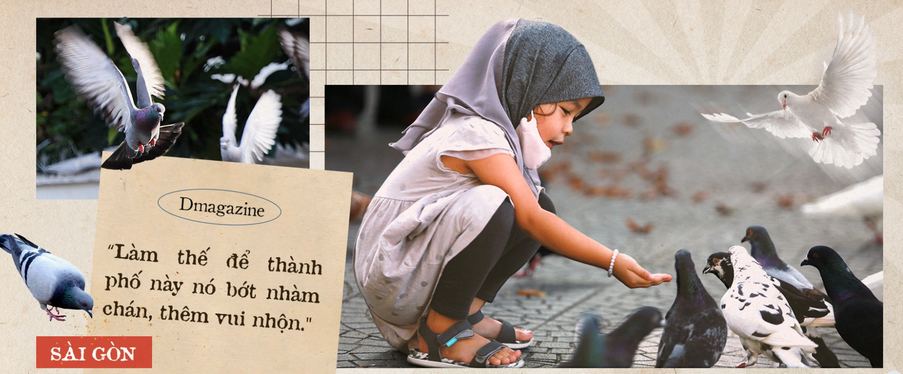 Rồi có lần thấy người TPHCM sao mà sống nhanh, thiếu vắng sắc màu cuộc sống, anh Cường và chị Thanh bèn bỏ tiền mua màu về vẽ lên đôi cánh. Ấy thế, đàn bồ câu được lên cả báo nước ngoài. Người thương khen đẹp, kẻ ghét bảo phá hoại, cả hai thì vẫn tặc lưỡi cười: "Làm thế để thành phố này nó thêm vui nhộn. Thứ hai, chúng có bị bắt, người ta biết có chủ mà sợ không dám mua. Vậy mà bớt bắt bồ câu…"