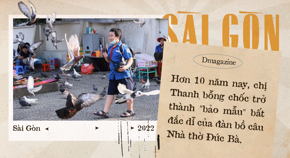 Từ khi nhận chăm sóc chúng, 365 ngày, chị Thanh đều có mặt ở bên hông Nhà thờ Đức Bà. Ấy vậy, đàn đàn bồ câu xem chị như mẹ. Tôi đã làm một phép thử, cầm chiếc lon guy gô "thần thánh" lắc gọi, nhưng nghe tiếng tôi chỉ lác đác vài con đói bụng chịu đáp xuống đất, còn nghe tiếng chị là khác hẳn.