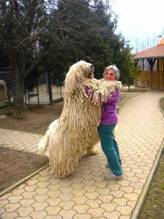 Giống chó Komondor có bộ lông dày như những chiếc dây thừng. Những chú chó trưởng thành thậm chí có sợi lông dài tới 90 cm. Trọng lượng của bộ lông của chú chó này có thể lên tới 30 kg.