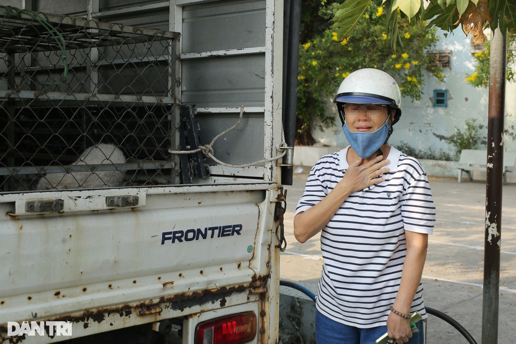 Người phụ nữ khóc mếu máo bên cạnh thú cưng bị nhốt trong lồng sắt (Ảnh: An Huy).