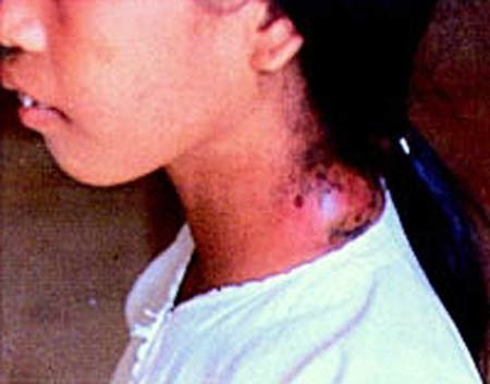Hạch ở cổ sưng to trong bệnh dịch hạch.