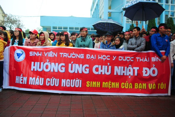 Chùm ảnh Chủ nhật Đỏ tại Trường ĐH Y dược Thái Bình sáng nay, 1/2: