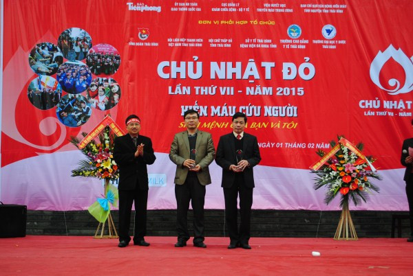 Tới dự Chủ nhật Đỏ có Bà Nguyễn Thị Thu Vân, Ủy viên BCH TƯ Đoàn, Phó Chủ tịch TƯ Hội LHTN Việt Nam, bà Cao Thị Hải, Phó Chủ tịch UBND tỉnh Thái Bình, Trưởng ban Vận động hiến máu nhân đạo tỉnh Thái Bình, Nhà báo Vũ Tiến, Phó TBT Báo Tiền phong, Nhà giáo nhân dân, GS-TS Lương Xuân Hiến, Bí thư Đảng ủy, Hiệu trưởng Trường ĐH Y Dược Thái Bình, Nhà giáo ưu tú, PGS-TS Hoàng Năng Trọng, Phó Bí thư Đảng ủy, Phó Hiệu trưởng, Trưởng ban Vận động hiến máu nhân đạo Đại học Y Dược Thái Bình.