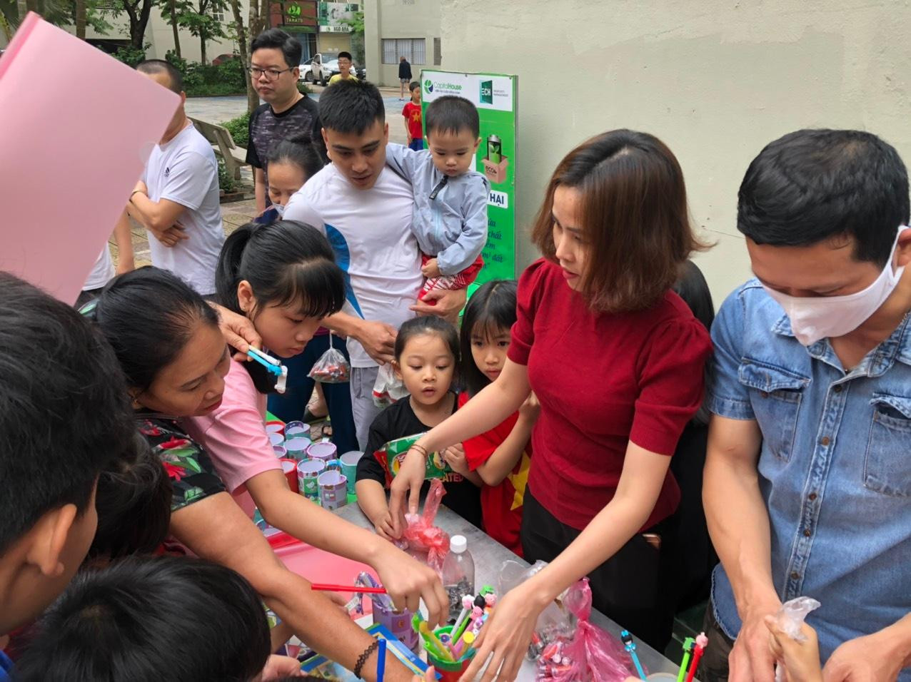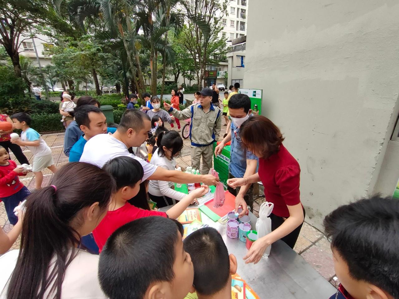 Các cháu nhỏ háo hức từ sáng sớm, tích cực thu gom pin đã sử dụng của nhà mình, các bé tự tay đổi pin và vô cùng vui sướng khi nhận được phần quà là các món quà nhỏ xinh xắn từ Ban quản lý tòa nhà.