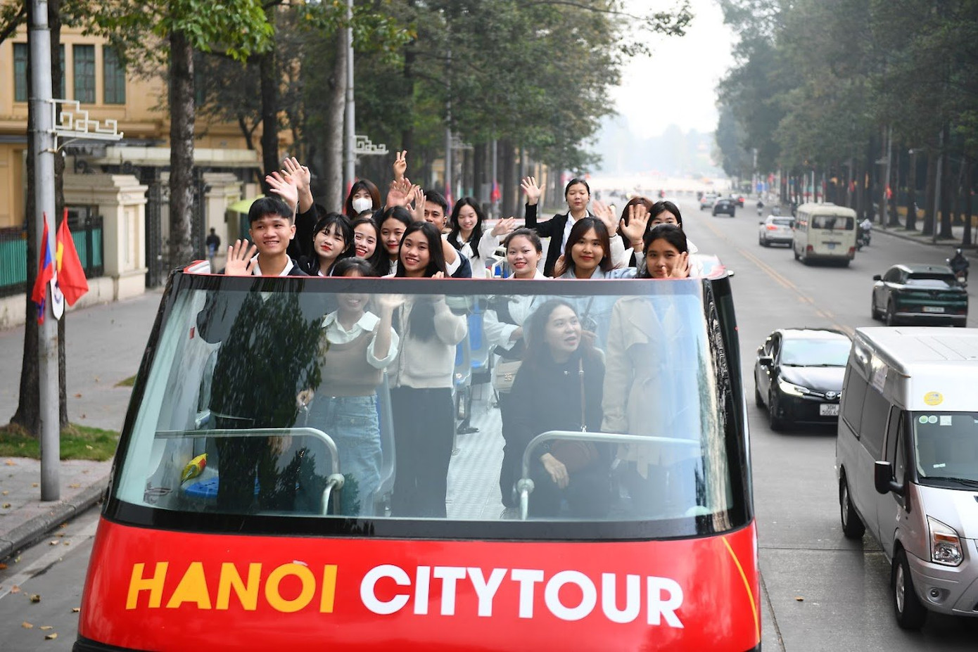6h30 sáng nay, các sinh viên từ Quảng Bình trở ra được trao học bổng Nâng bước thủ khoa 2023 đã tề tựu tại Hà Nội để trải nghiệm City tour.