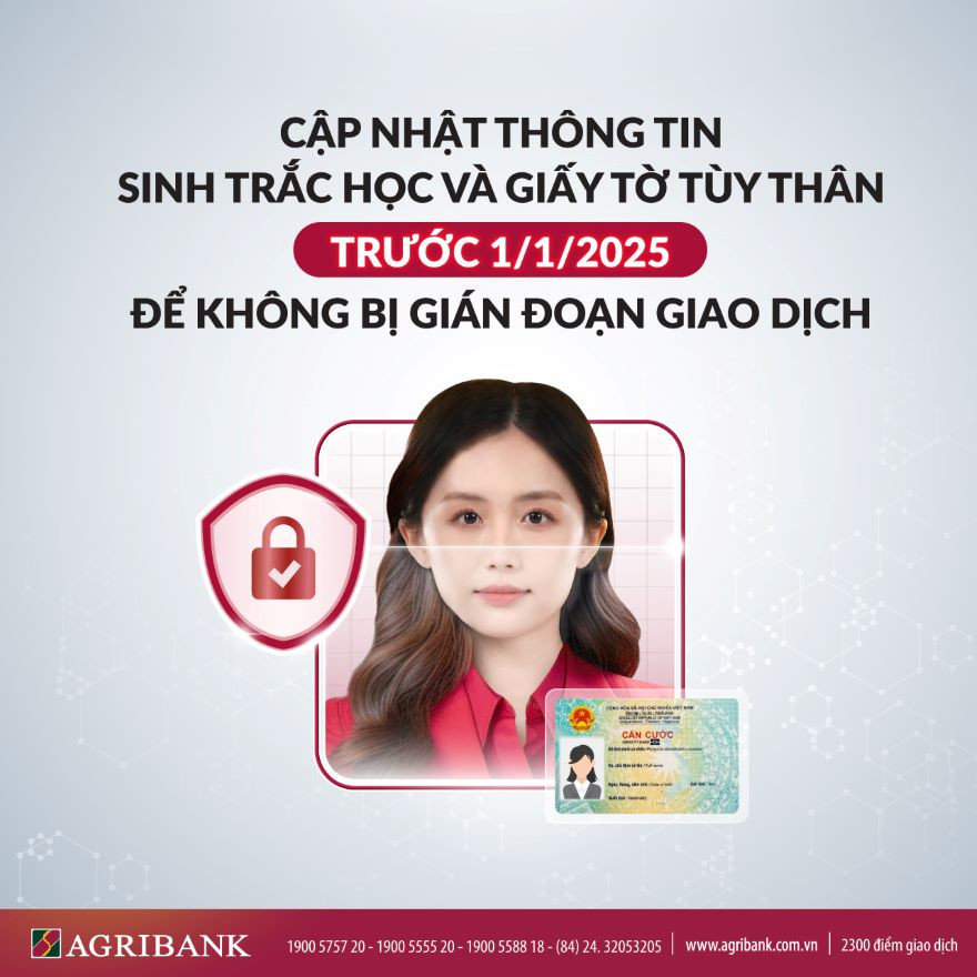 Để không bị gián đoạn giao dịch, Agribank khuyến nghị khách hàng chưa cập nhật thông tin sinh trắc học và/hoặc chưa cập nhật thông tin giấy tờ tùy thân thay thế cho giấy tờ tùy thân hết hiệu lực thực hiện: