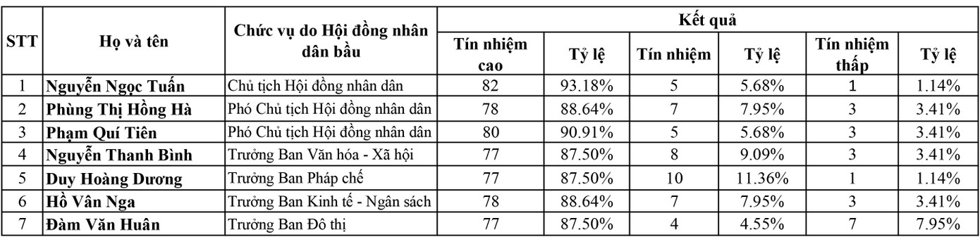 Ngày làm việc thứ 2, Kỳ họp thứ 14, HĐND thành phố Hà Nội khóa XVI, nhiệm kỳ 2021-2026, HĐND thành phố đã tổ chức lấy phiếu tín nhiệm đối với 28 người được HĐND thành phố bầu hoặc phê chuẩn (ba mức lấy phiếu tín nhiệm gồm: Tín nhiệm cao - Tín nhiệm - Tín nhiệm thấp).