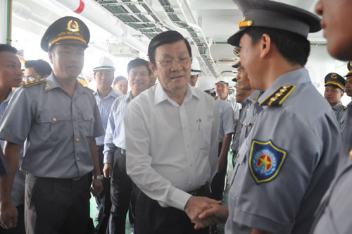 Chủ tịch nước Trương Tấn Sang đánh giá cao tinh thần làm việc có trách nhiệm của toàn thể cán bộ, công nhân viên công ty, khẩn trương hoàn thiện tàu kiểm ngư KN 782 để bàn giao vào ngày 30/7 tới đây.